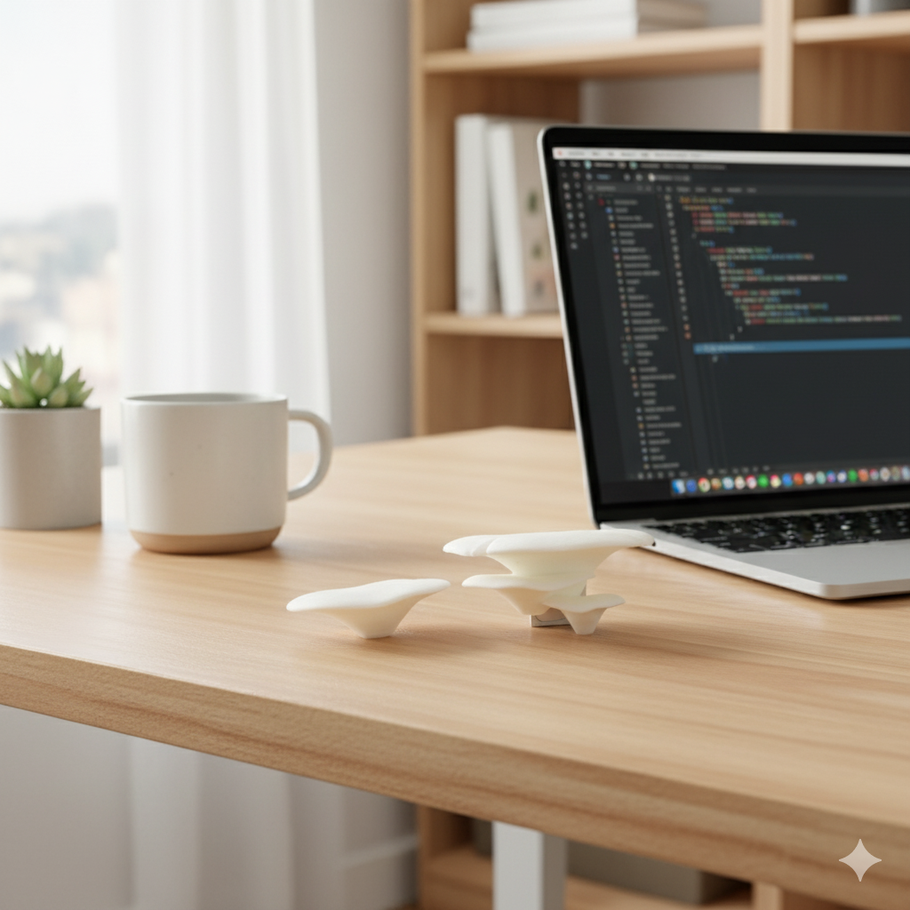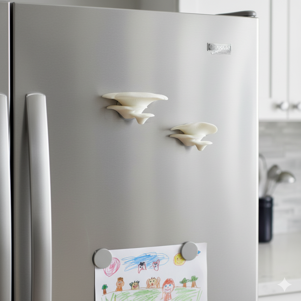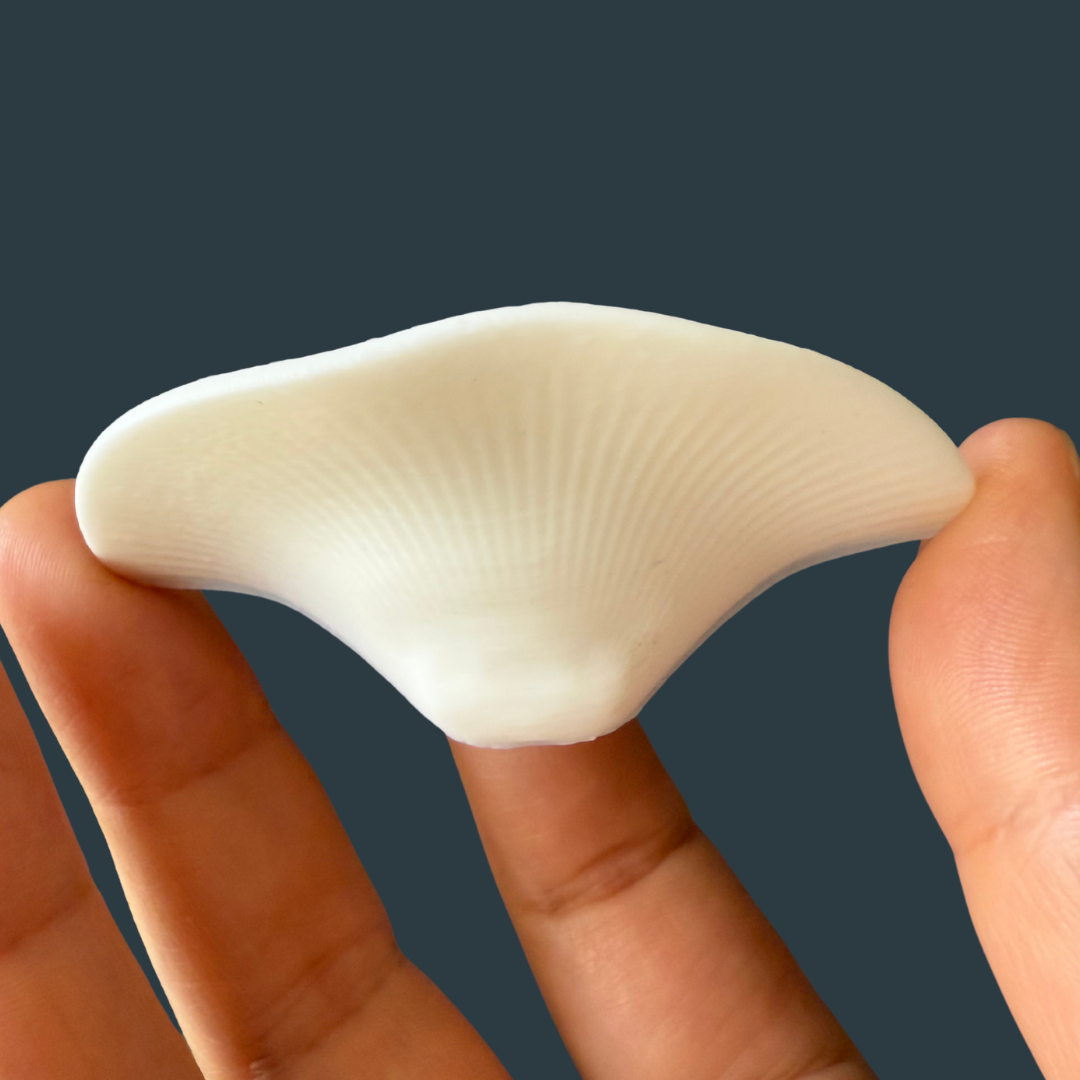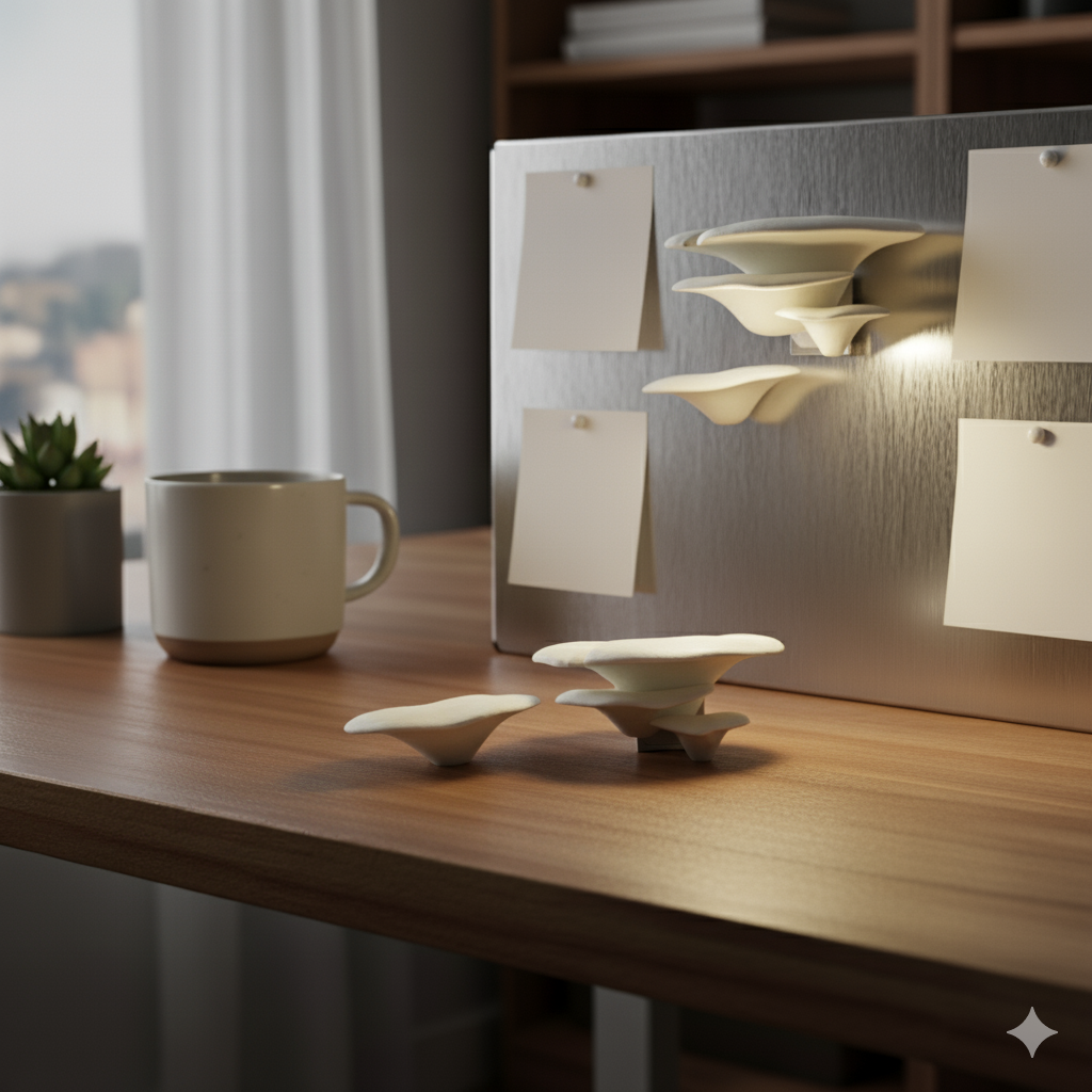 Nuestros imanes VitalFungi son piezas únicas, inspiradas en la belleza natural de los hongos y elaboradas con plástico compostable, un material que se degrada sin dejar residuos en el medioambiente.