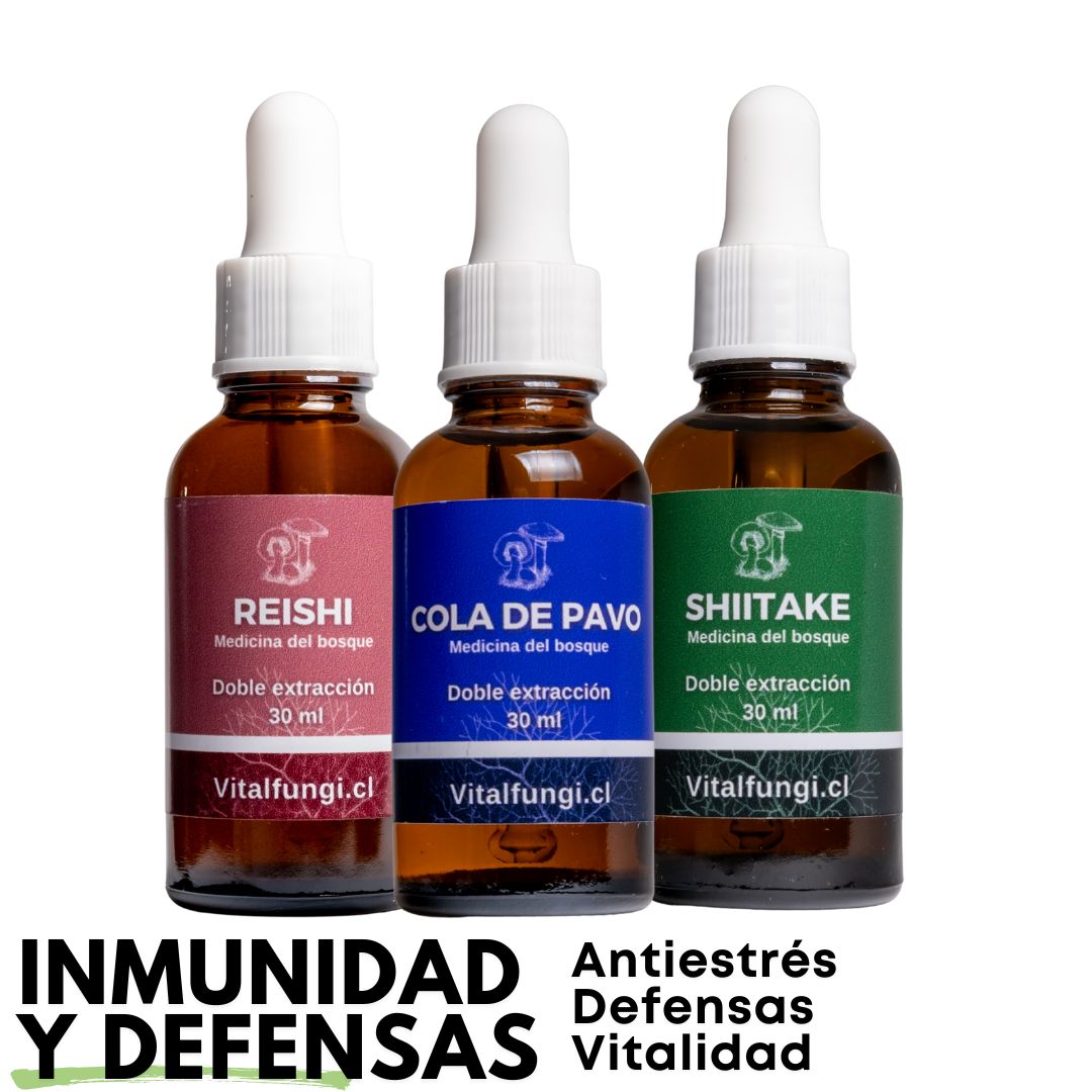 El Pack Defensas combina tres hongos medicinales de reconocida eficacia: Reishi, Cola de Pavo y Shiitake. Esta sinergia ofrece un apoyo integral al sistema inmunológico y contribuye al bienestar general del organismo.